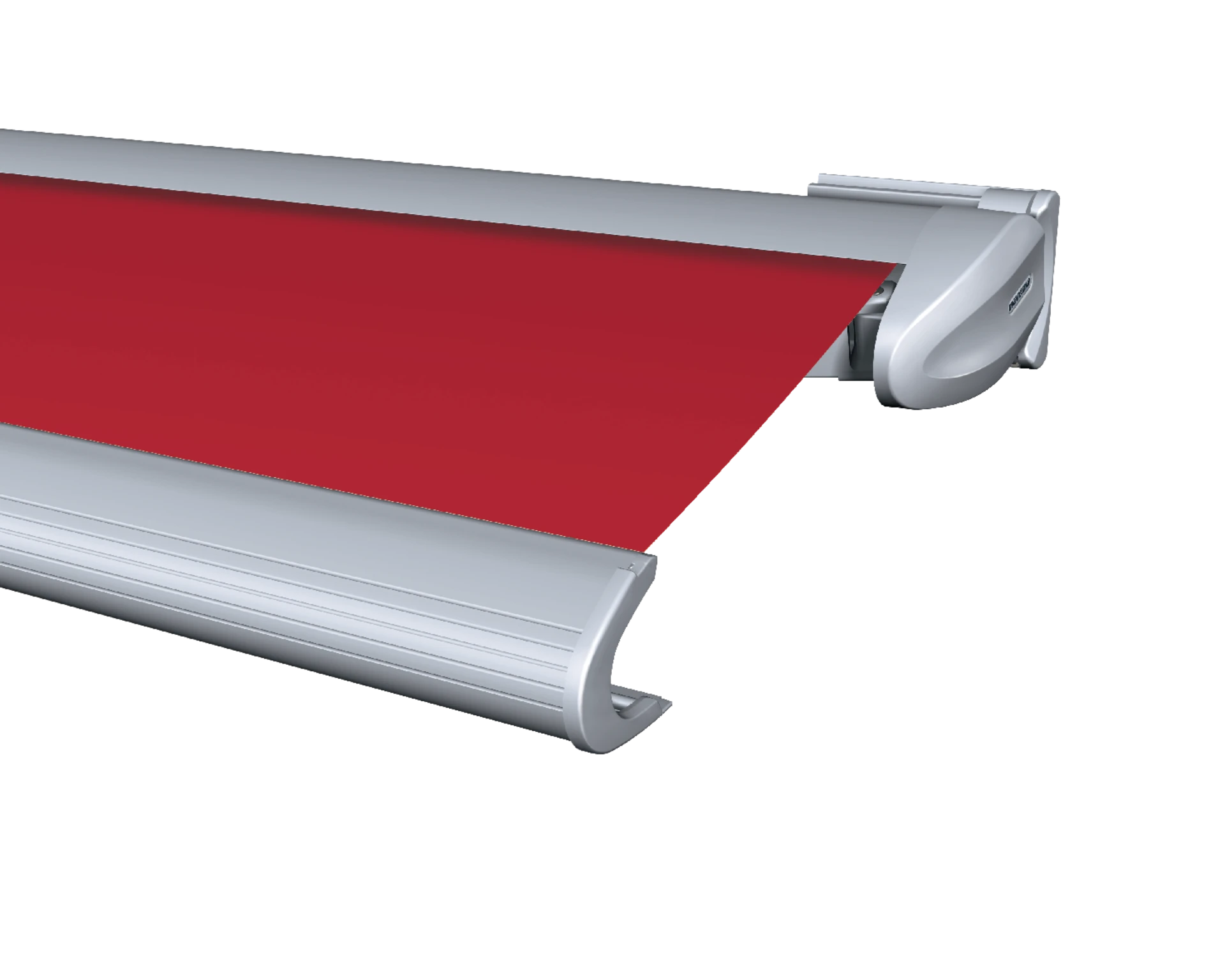 Rote Markise mit silbernem Gehäuse